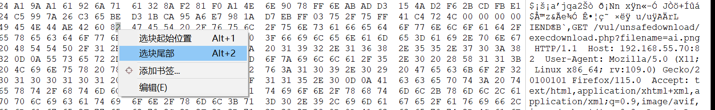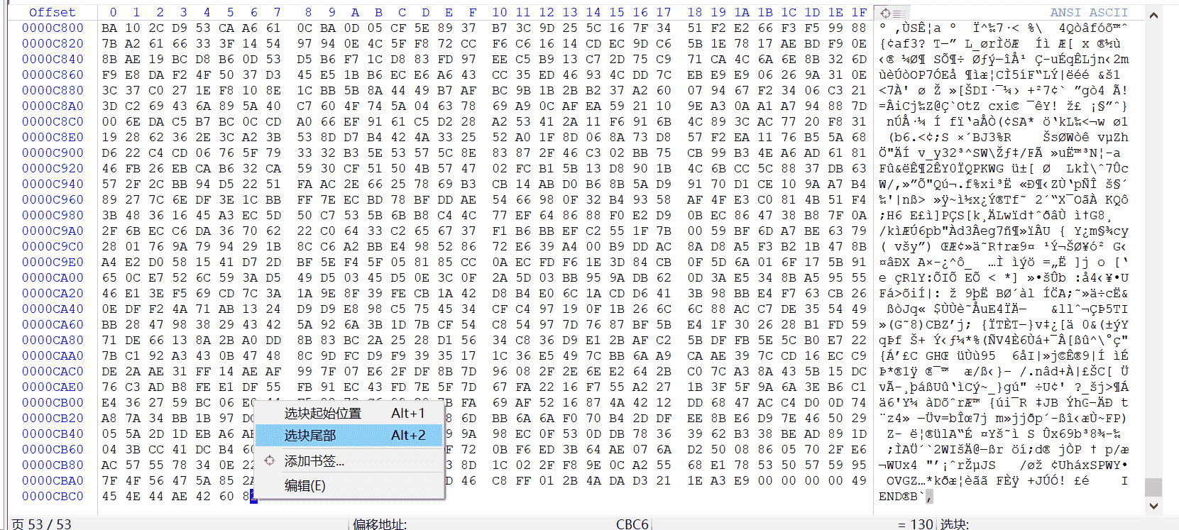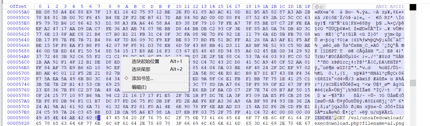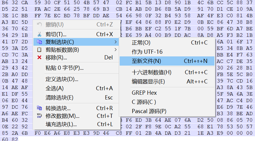 2.13 同样在左侧十六进制区域89右键点击,选择选块起始位置
