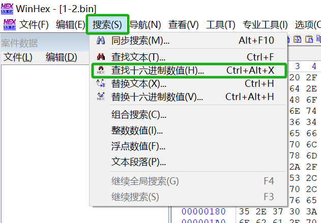 2.1 左上方,搜索–>查找十六进制数值
